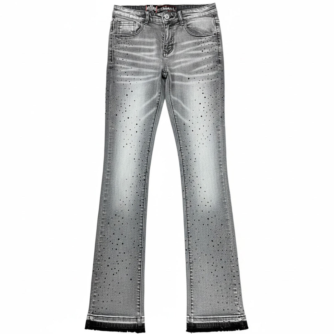 Embellished Rhinestone Flared Denim