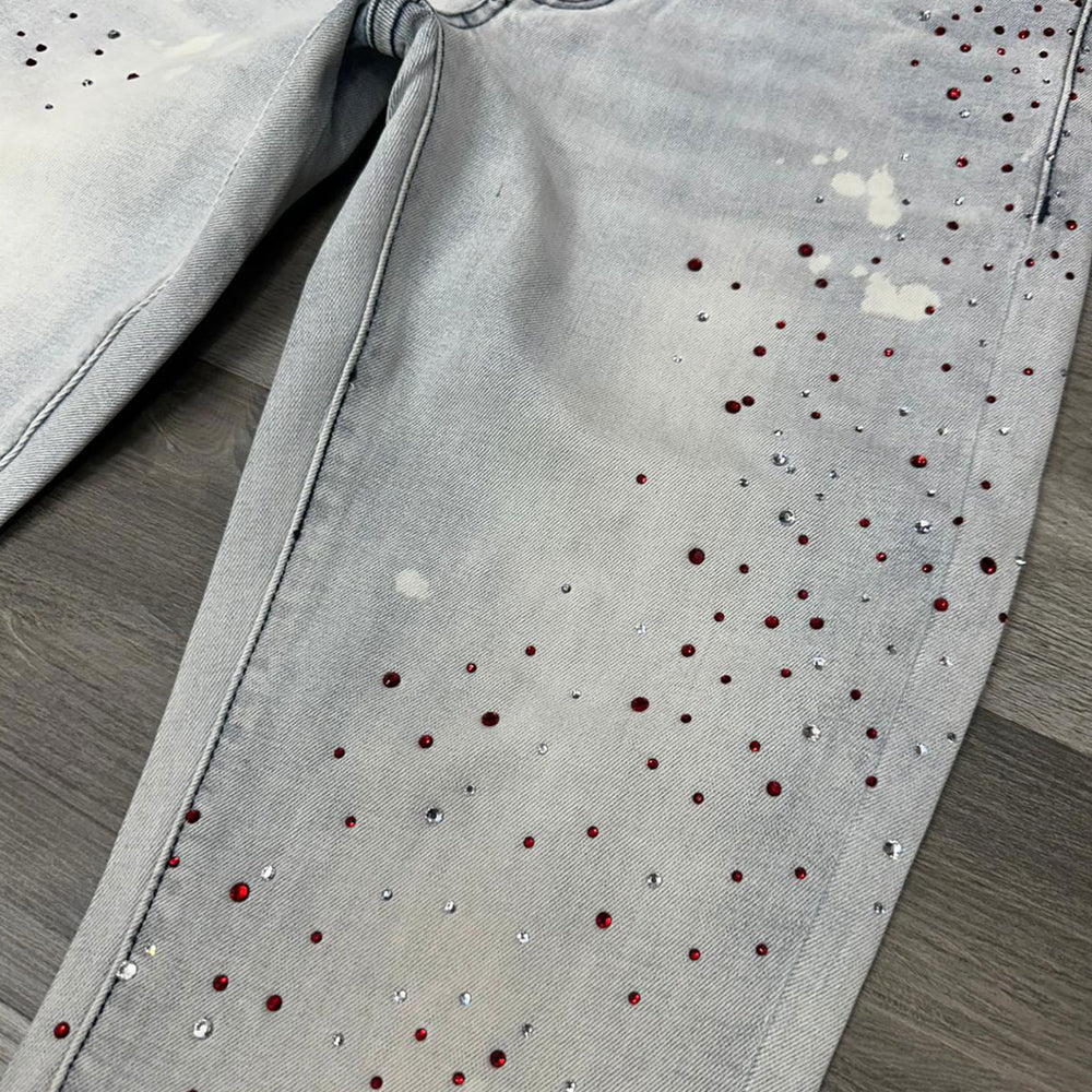 Rhinestone Stacked Denim (White)