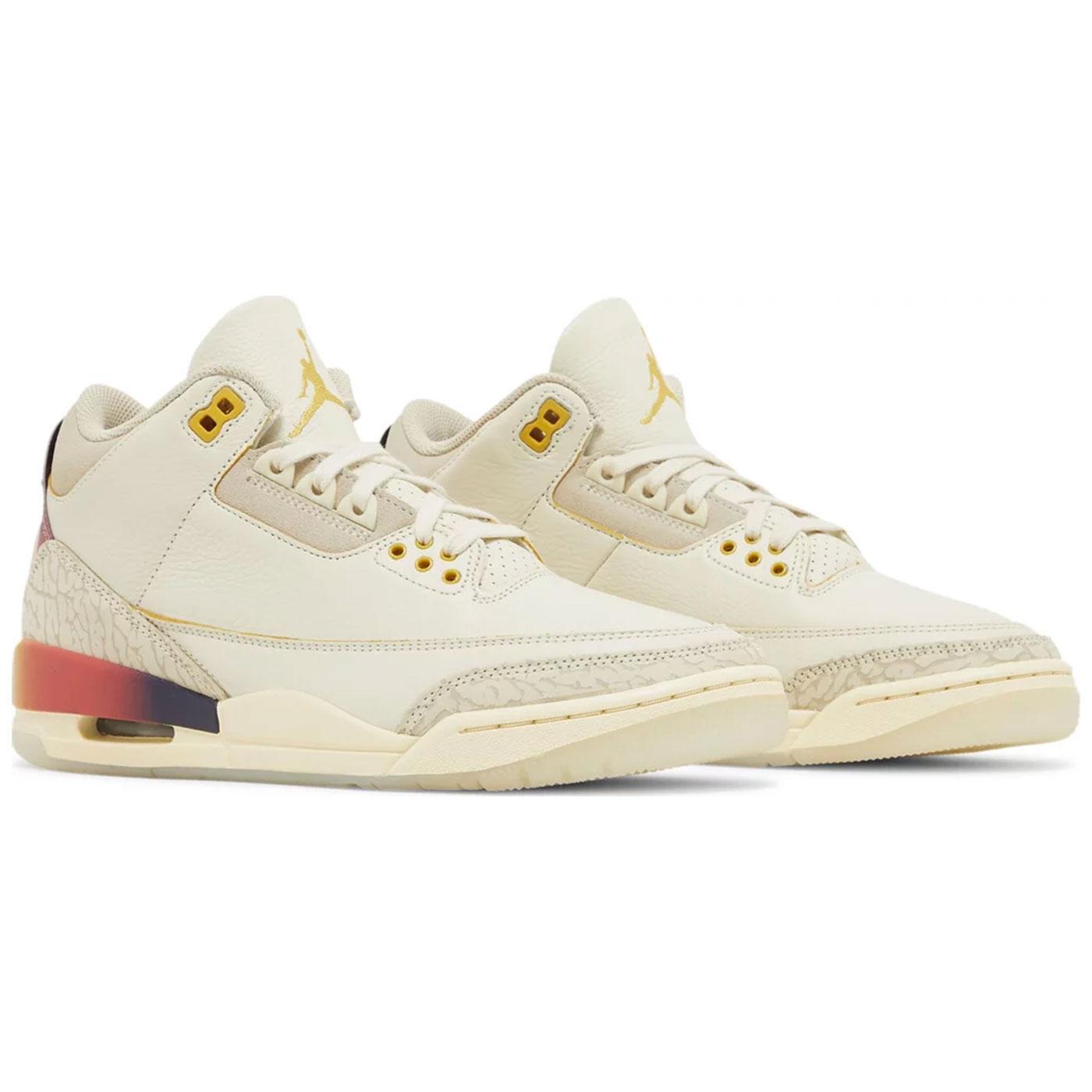 This Air Jordan 3 Retro in collaboration with latin artist J. Balvin featrures a tropical colorway resembling Medellin sunsets with its yellow tones in contrast with a cream leather base.