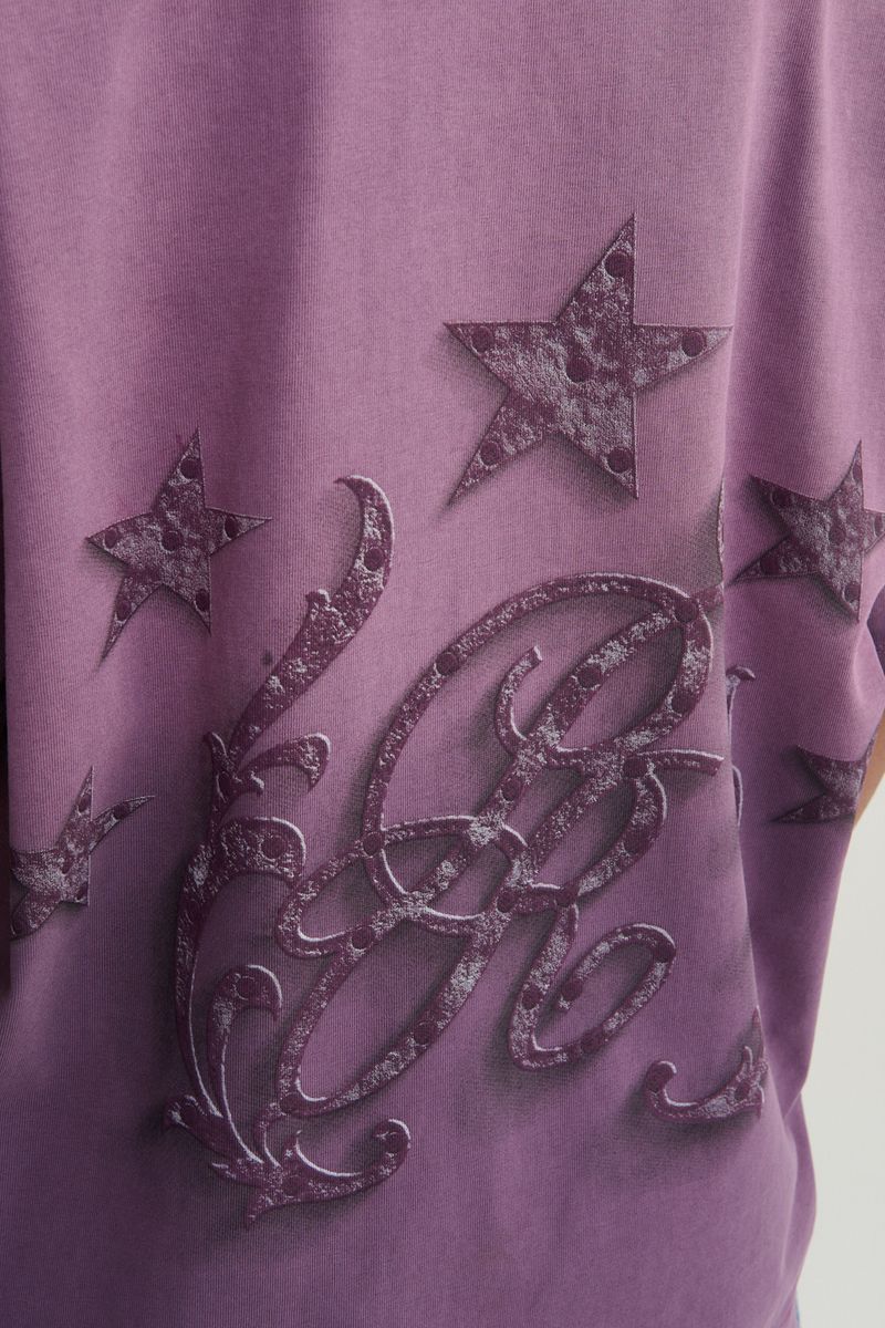 This purple t-shirt from Pure Brand features an classy rustic graphic on front and a star monogram graphic on rear.