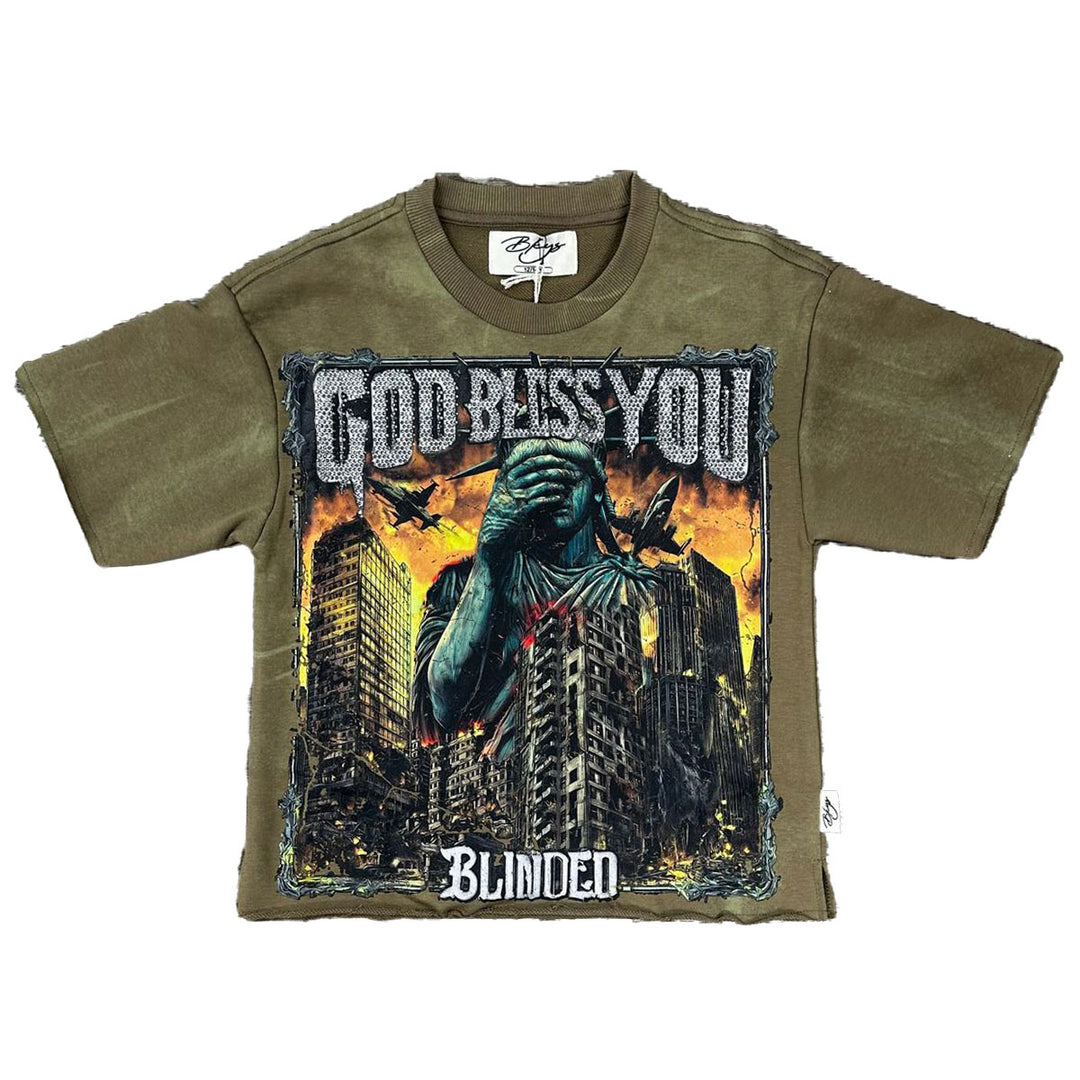 Boys God Bless You Cropped Tee (Khaki)