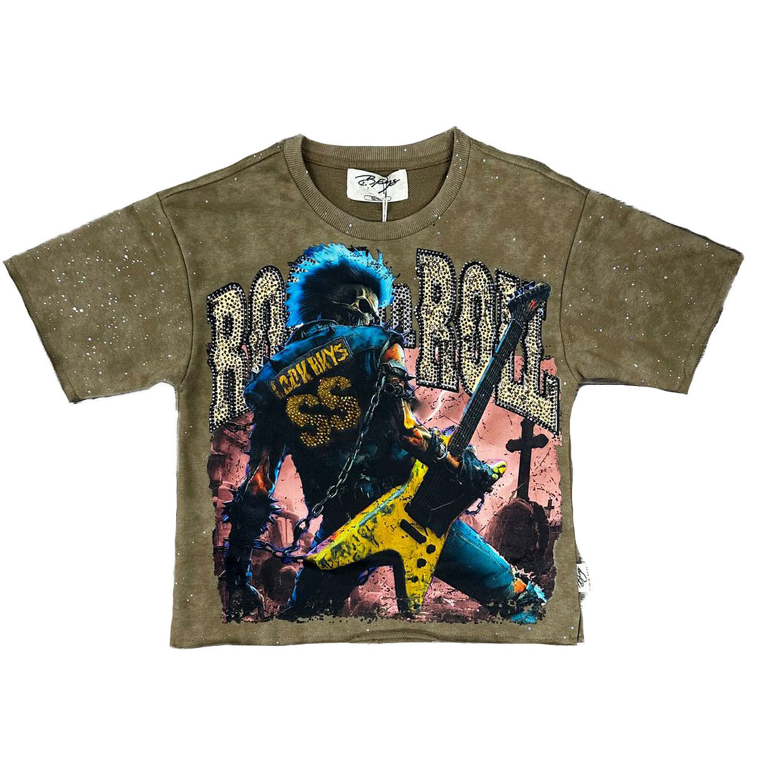Boys Rock N Roll Cropped Tee (Khaki)